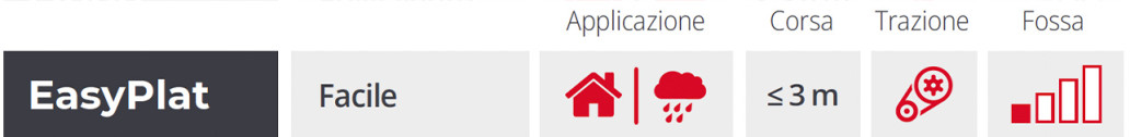 EASYPLAT è la piattaforma facile e veloce da installare perché premontata e fornita in 2 pezzi, adatta sia ad installazioni interne che esterne, con corsa fino a 3 mt. E’ ideale in contesti dove l’accessibilità si concilia con l’eleganza grazie cancelli in vetro, pareti di bordo panoramiche ed illuminazione di bordo. E’ la soluzione ideale per installazioni che richiedono velocità di evasione ordine ed installazione.